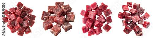 Pieces of raw beef cubes isolated on transparent background ,PNG, set of