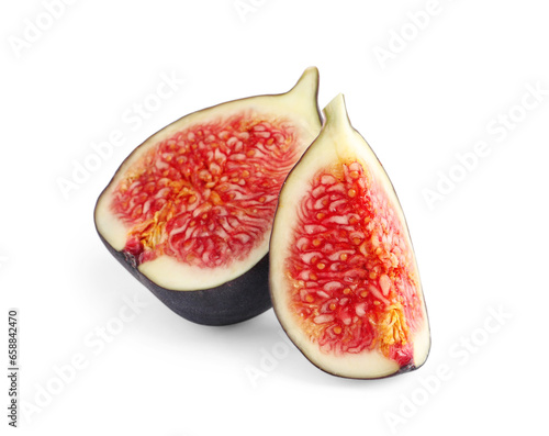 Pieces of ripe fresh fig isolated on white