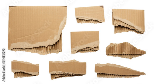 Pieces of torn corrugated cardboard isolated PNG with Transparent Background