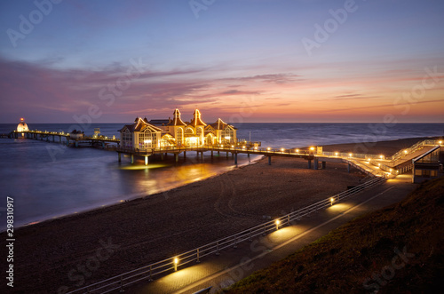 Pier in Sellin, the Jewel of Rugia (Ruegen) Baltic Coast island at purple dawn, Germany.