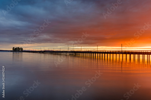 Pier on lake at sunset, Rättvik, Dalarna, Sweden