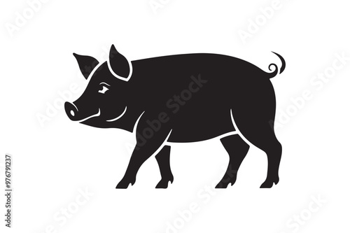 Pig silhouette vector illustration, Pig silhouette vector, Pig silhouette