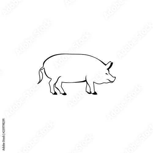 pig silhouette. vector outline. black and white animal. monochrome image.