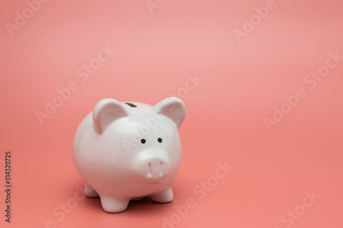 Piggy bank on pink pastel background with copy space for your design. Money saving concept.