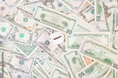 Piggy bank with a lot of American Dollars; investment and banking concepts