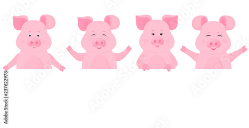 Pigs holding a blank sign, clean billboard. Place for your text. Cute piggy.