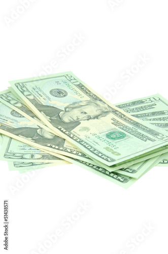 pile of american dollars on white background