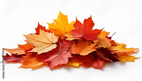 Pile of autumn colored leaves isolated on white background.A heap of different maple dry leaf .Red and colorful foliage colors in the fall season