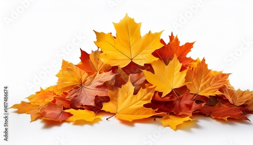 Pile of autumn yellow leaves isolated on white backgroundA heap of different maple dry leaf Red and colorful foliage colors in the fall season