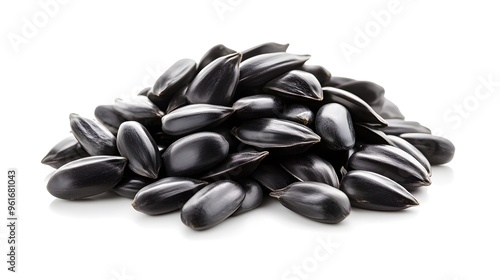 Pile of black sunflower seeds. Perfect for food-related advertising banners, showcasing the natural texture and healthy snack concept. Healthy snacks, and nutritional concepts in commercial designs