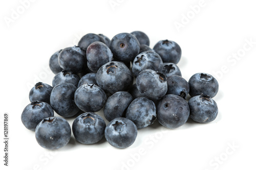 Pile of blueberries isolated on white background