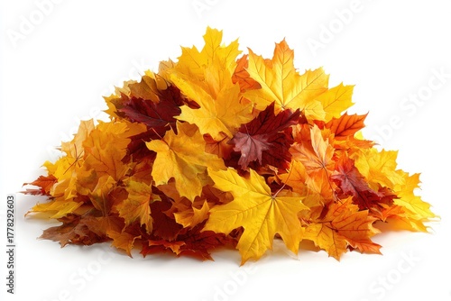 Pile of bright, colorful autumn maple leaves