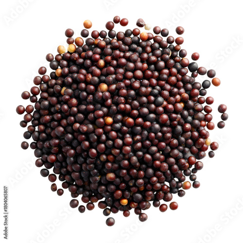 Pile of brown mustard seeds ready for culinary use close up on transparent background