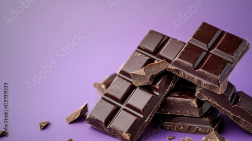Pile of chocolate bars with a purple background