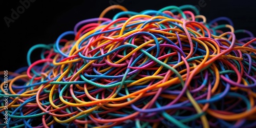 Pile of Colorful Elastic Hair Ties or Rubber Bands on Black