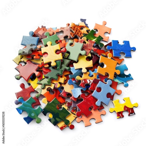 Pile of colorful jigsaw puzzle pieces