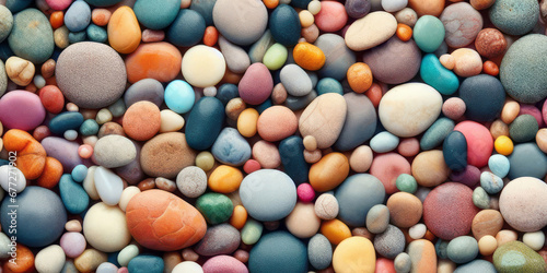 Pile of colorful sea stones, Colorfu pebbles beach, top view, ai generated