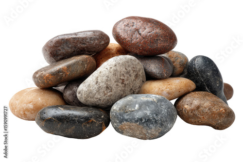 Pile of Colorful Smooth stones isolated on transparent white background, clipping path