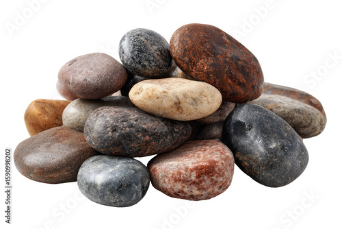 Pile of Colorful Smooth stones isolated on transparent white background, clipping path