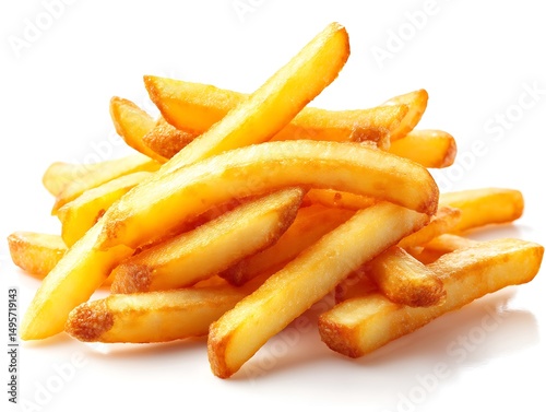 Pile of Crispy and Golden French Fries Isolated on a White Background