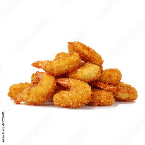 Pile of crispy fried shrimp isolated on white background