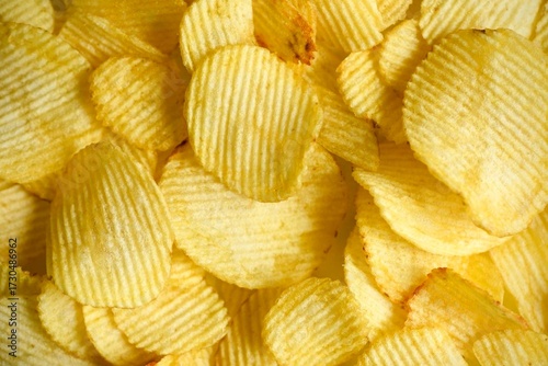 Pile of Crispy, Golden Ruffled Potato Chips Texture