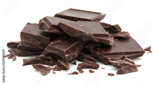 Pile of Dark Chocolate Pieces on White Background Perfect for Desserts and Gourmet Treats