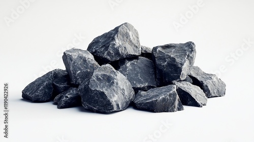 Pile of dark gray stones on white background.