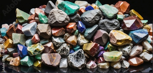 Pile of different rare mineral clays ground to powder, as well as bound and enclosed in various rocks for the technical industry