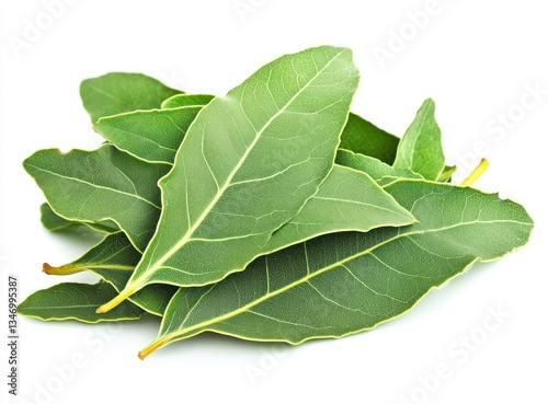 Pile of Fresh Bay Leaves on White Background for Culinary Use