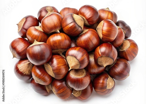 Pile of Fresh Roasted Chestnuts Ready to Eat on a White Surface
