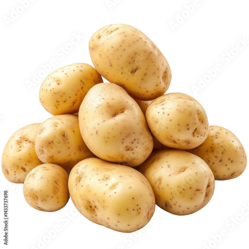 Pile of fresh, unwashed potatoes isolated on a white background for culinary use