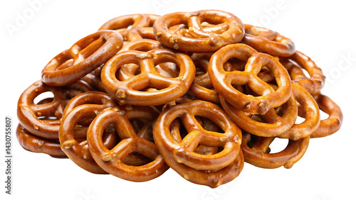 Pile of Golden Brown Pretzels on transparent background, a Salty Snack Delight