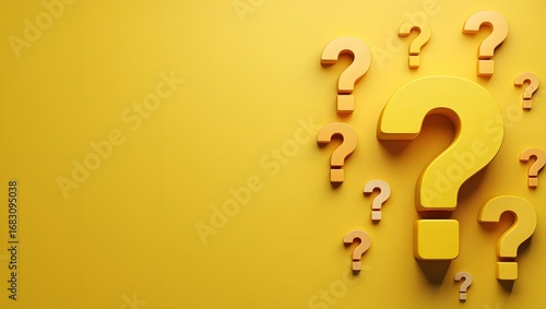 Pile of golden Question Marks on golden background with copy space - 3D illustration
