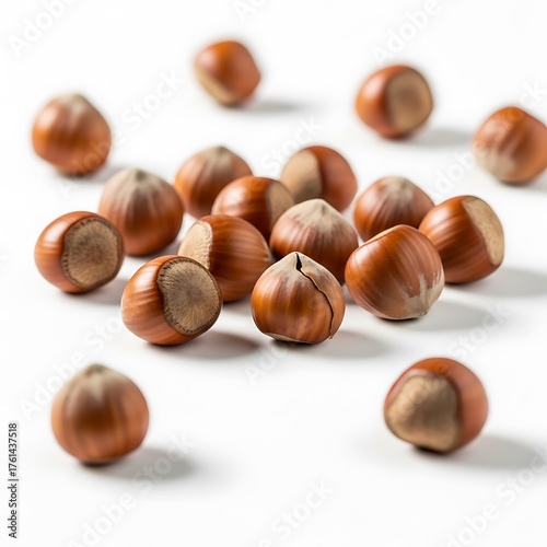 Pile of Hazelnuts on White Background - Close-Up of Fresh Nuts.