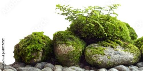 Pile of Mossy Rocks Isolated on Transparent Background