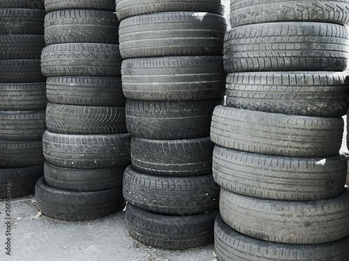 Pile of old tires neatly arranged