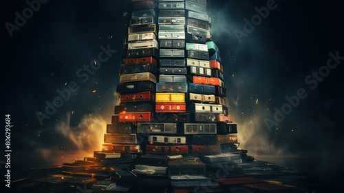 Pile of old vintage audio cassettes on a pile of rubbish.