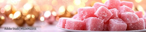 Pile of Pink Turkish Delight Cubes on a Decorative Plate. Generative AI