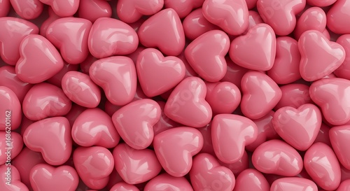 Pile of Shiny Pink Heart Shaped Candies Background for Valentines Day or Special Occasions Sweet Celebration Display
