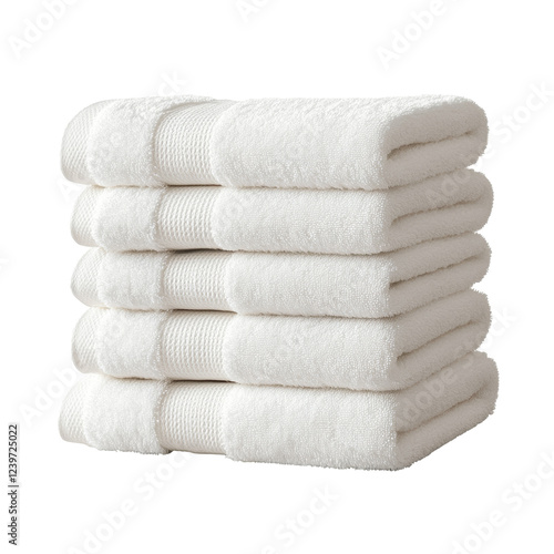 Pile of soft fluffy white towels stacked neatly on a transparent background ideal for home decor and lifestyle projects
