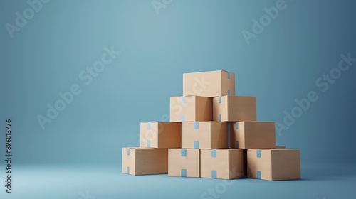 Pile of stacked sealed goods cardboard boxes. Delivery, logistic and transportation isolated on a blue background