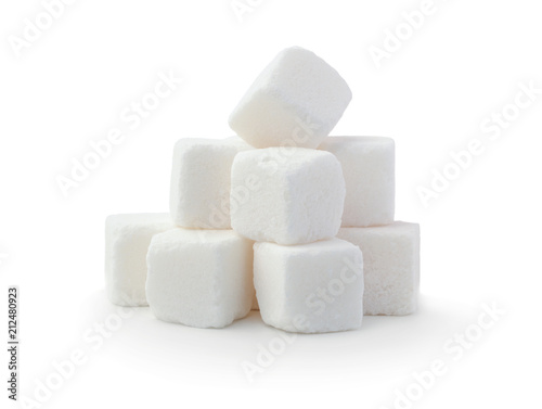 Pile of sugar cubes isolated