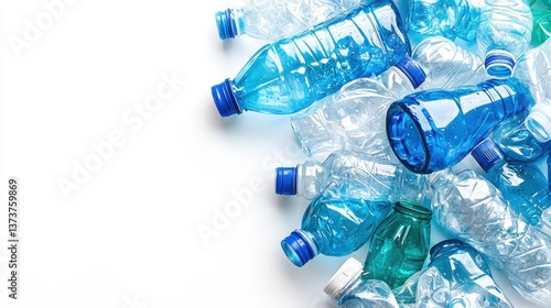 Pile of Used Plastic Water Bottles on White Background for Recycling