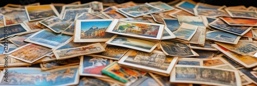 Pile Of Vintage Postcards, Travel Memories From Around The World, Reminiscing Old Times