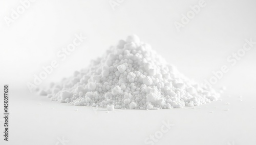 Pile of white granulated sugar on white background, shiny, photography, detail
