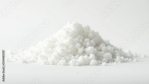 Pile of white granulated sugar on white background, still life, background, confectionery