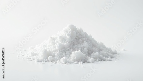 Pile of white sugar crystals on white background, confectionery, candy, texture