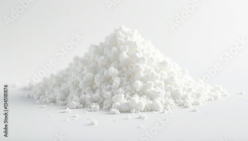 Pile of white sugar crystals on white background, sweetness, sweetener, refined