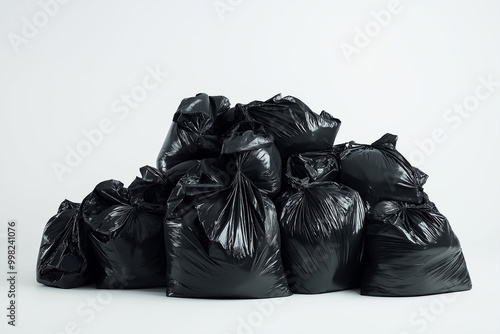 Piled, black, plastic garbage bags, environmental pollution, waste management, eco-friendly, sustainability, recycling, clean-up efforts, trash concept